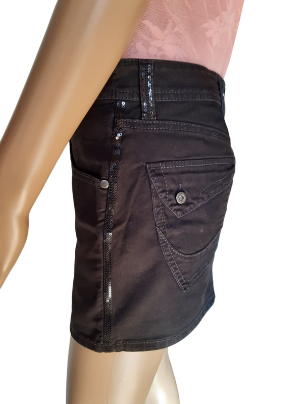 Mini-jupe en jean noir Calvin Klein - Style audacieux avec détails en sequins pour une allure éclatante et tendance - article de seconde main