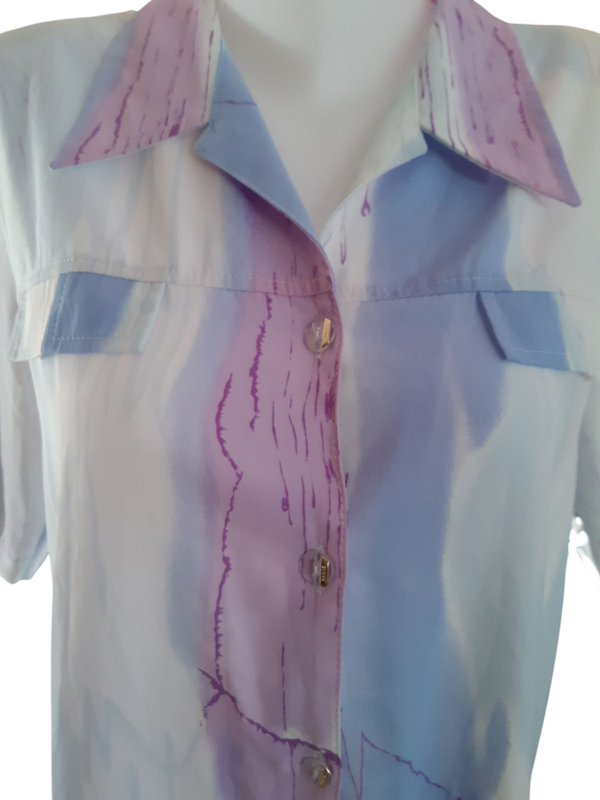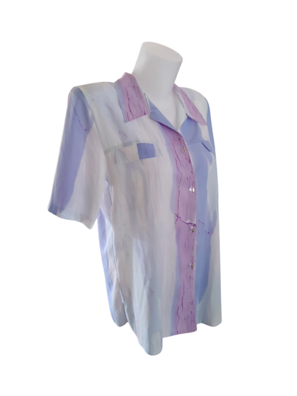 Chemise pastel avec épaulettes - Blanc, bleu & rose - Manche courte & coupe droite - Vintage