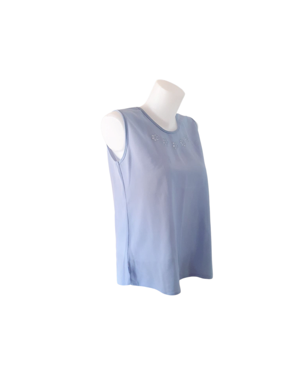 Blouse sans manche - Fleur ajourée, bleu clair - Coupe droite - Vintage