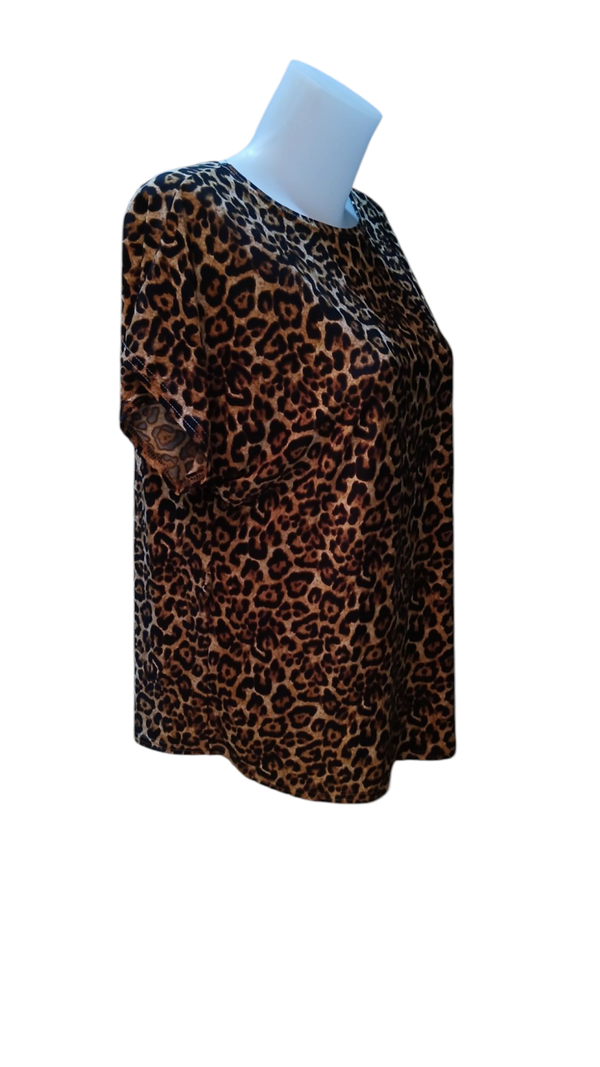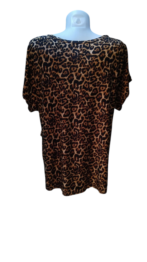 Blouse imprimée léopard avec passant pour ceinture fine ( non livrée avec )