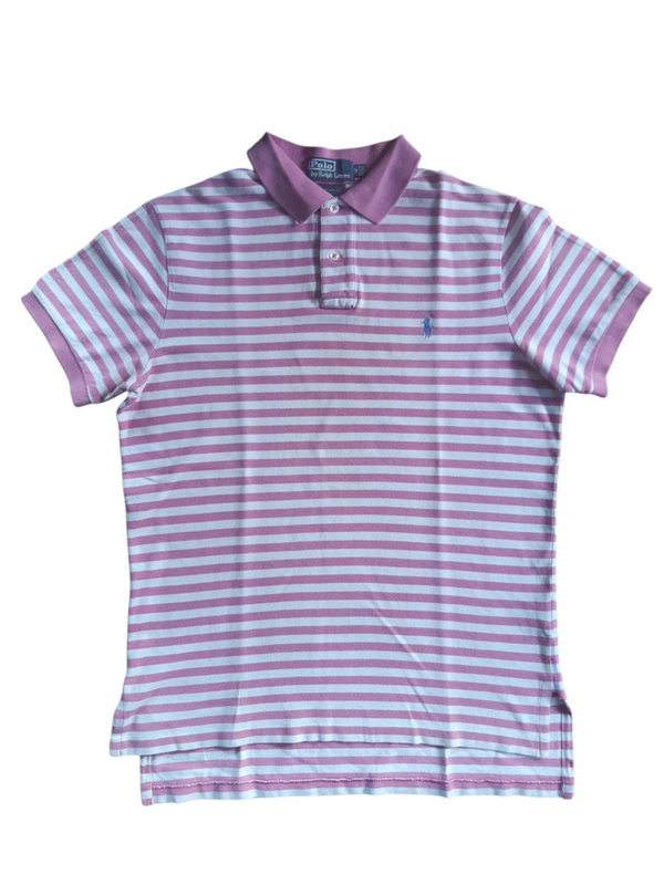 Ce polo Ralph Lauren, ligné rose et blanc, allie raffinement et décontraction. Sa coupe ajustée en taille M et sa matière haut de gamme offrent un confort optimal tout en assurant un style intemporel.