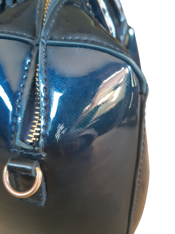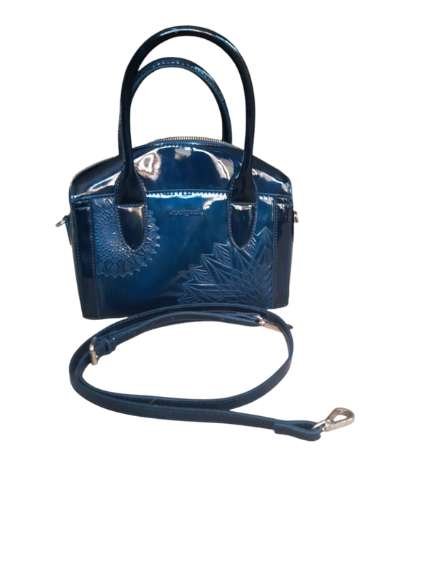 Sac à main verni de couleur bleu nuit - mandalas gravé - bandoulière amovible