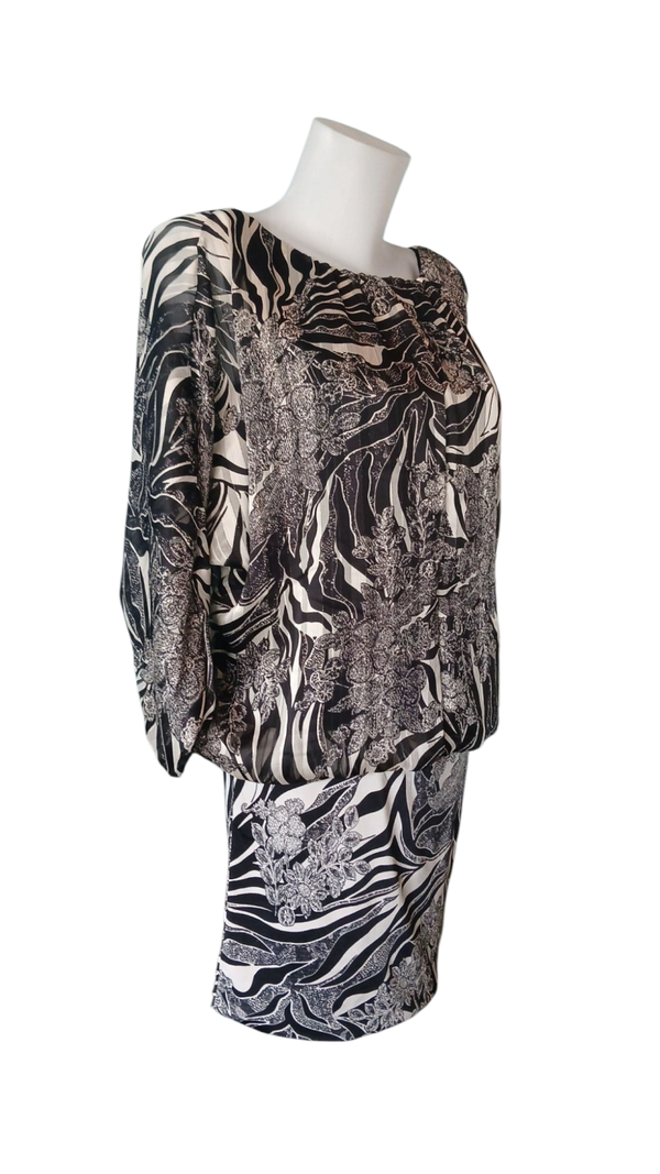 Robe sophistiquée haut ample - manche chauve souris - bas moulant dans les tons de gris