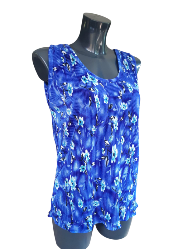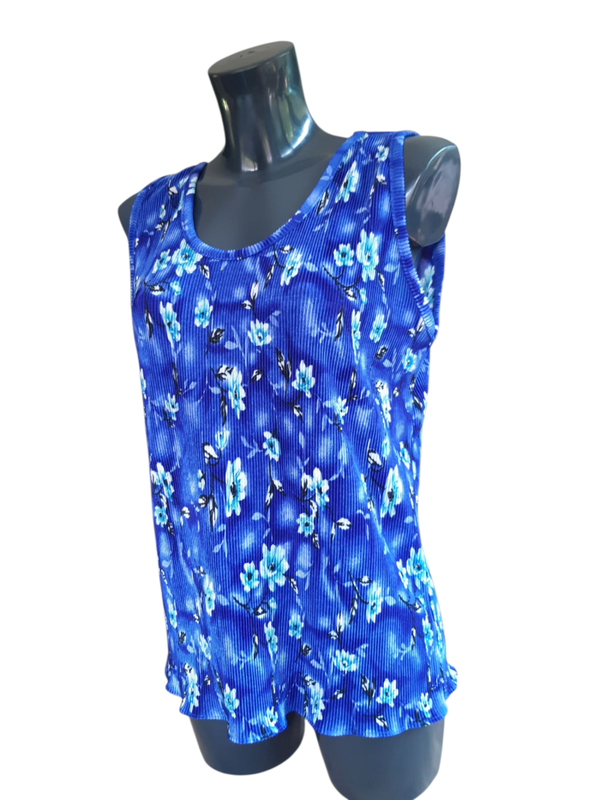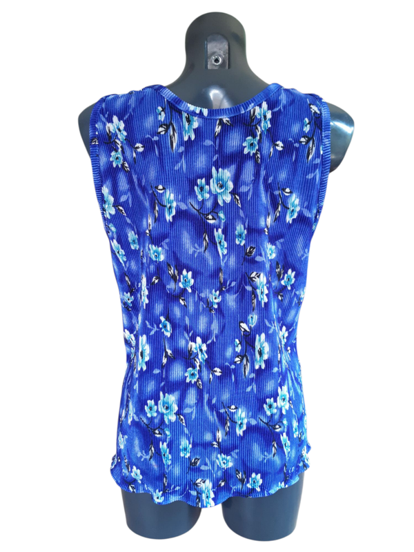 Un haut pétillant et coloré, parfait pour illuminer votre tenue estivale ! Ce débardeur fluide arbore un bleu éclatant rehaussé par de jolis motifs fleuris, pour un style frais et vibrant.